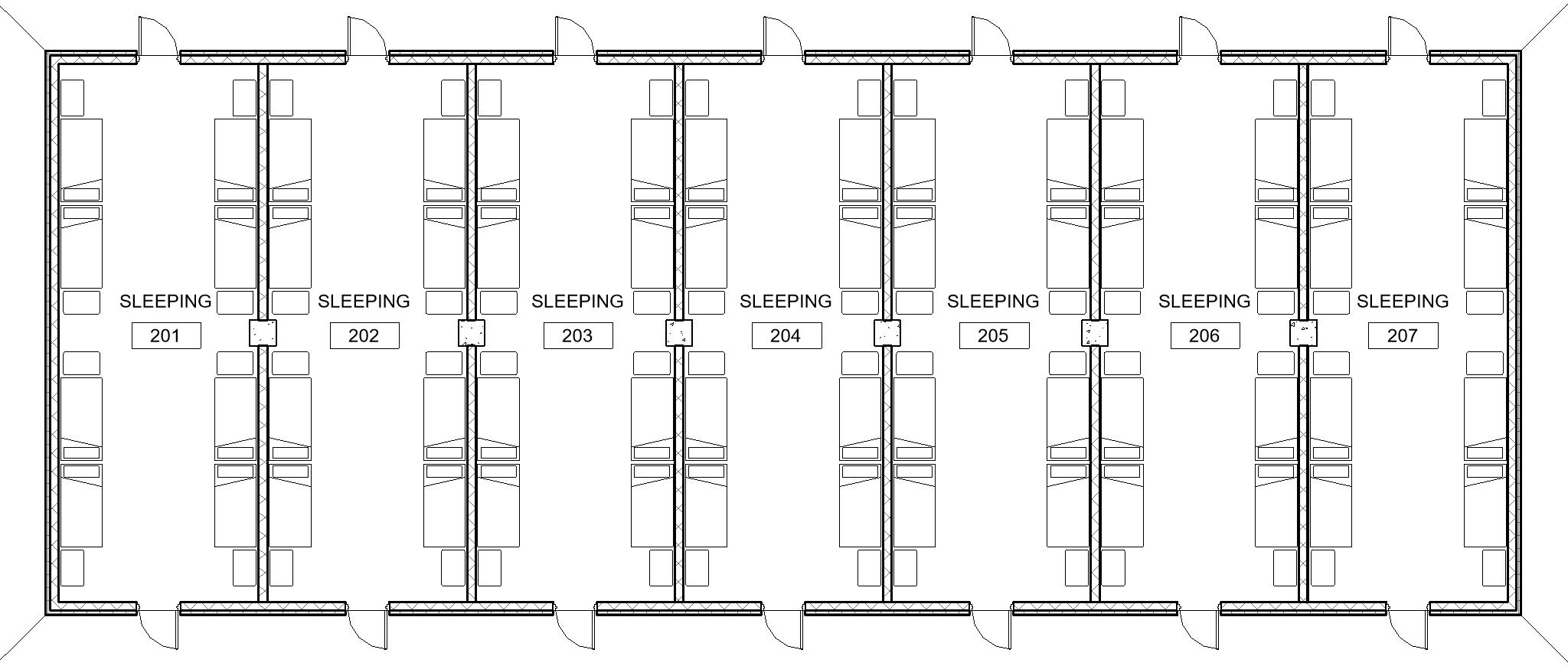 Billeting Option 2 is 14 Bay, Full Floor Open Barracks for up to 56PN total, 8 PN per room.